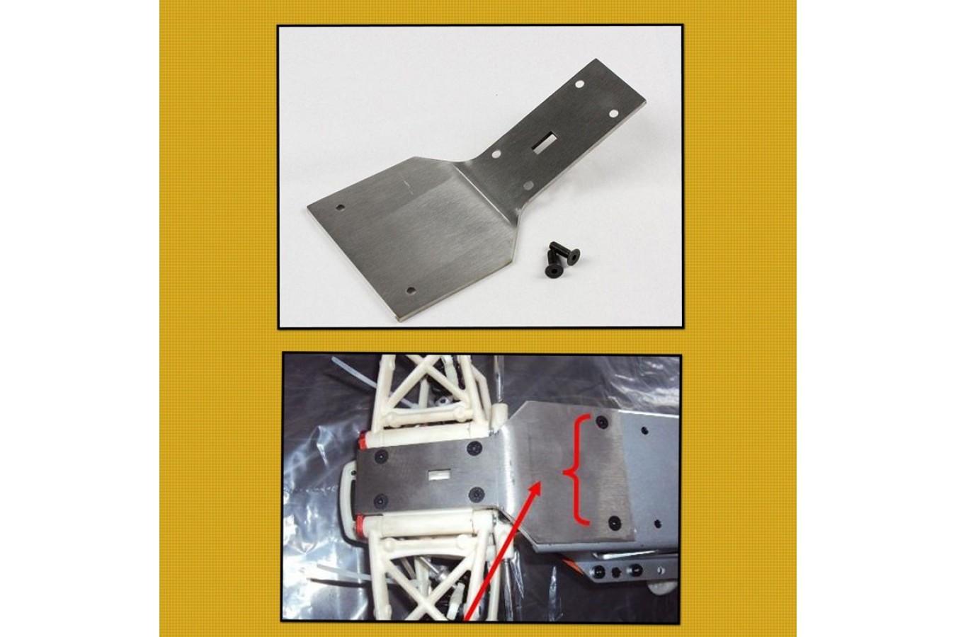 These plates are a great tool to save you money. Not only do they strengthen the front end during normal use, but in the event of a major front-ender the chances of your chassis breaking or bending completely out of shape is a lot less. Most front-end crashes end up in bending the Main Chassis so far that if bent back it will snap & then costing you a new chassis. This stiffener deter the chassis from bending too far so it is possible to get it back into shape without the cost.